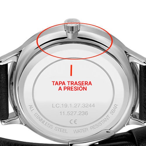 Presiona con los dedos hasta escuchar un “clic”, lo que indica que la tapa ha encajado. Este método funciona en la mayoría de los relojes con tapa a presión, pero asegúrate de presionar de manera uniforme para que la tapa quede bien sellada por todo el contorno.
